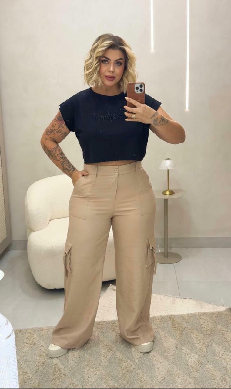 Essa calça cargo une o clássico ao moderno com seu corte de alfaiataria e bolsos utilitários. Em tecido estruturado, ela tem modelagem reta com cintura alta e cinto embutido, garantindo conforto e elegância. Ideal para quem ama produções práticas, estilosas e que funcionam do trabalho ao passeio.