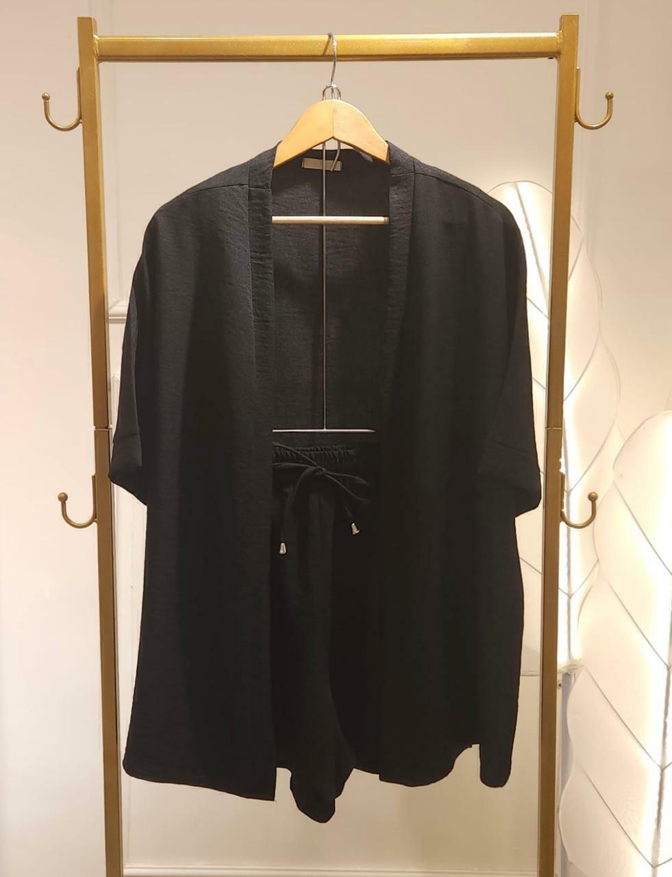 - Versatilidade:*Use o short e o quimono juntos para um visual coordenado ou separe as peças para criar infinitas combinações.